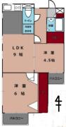 間取り 2LDK 内訳 洋室6畳,4.5畳 LDK9畳 |