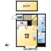 間取り 1R 内訳 洋室6畳 ロフト2畳 |